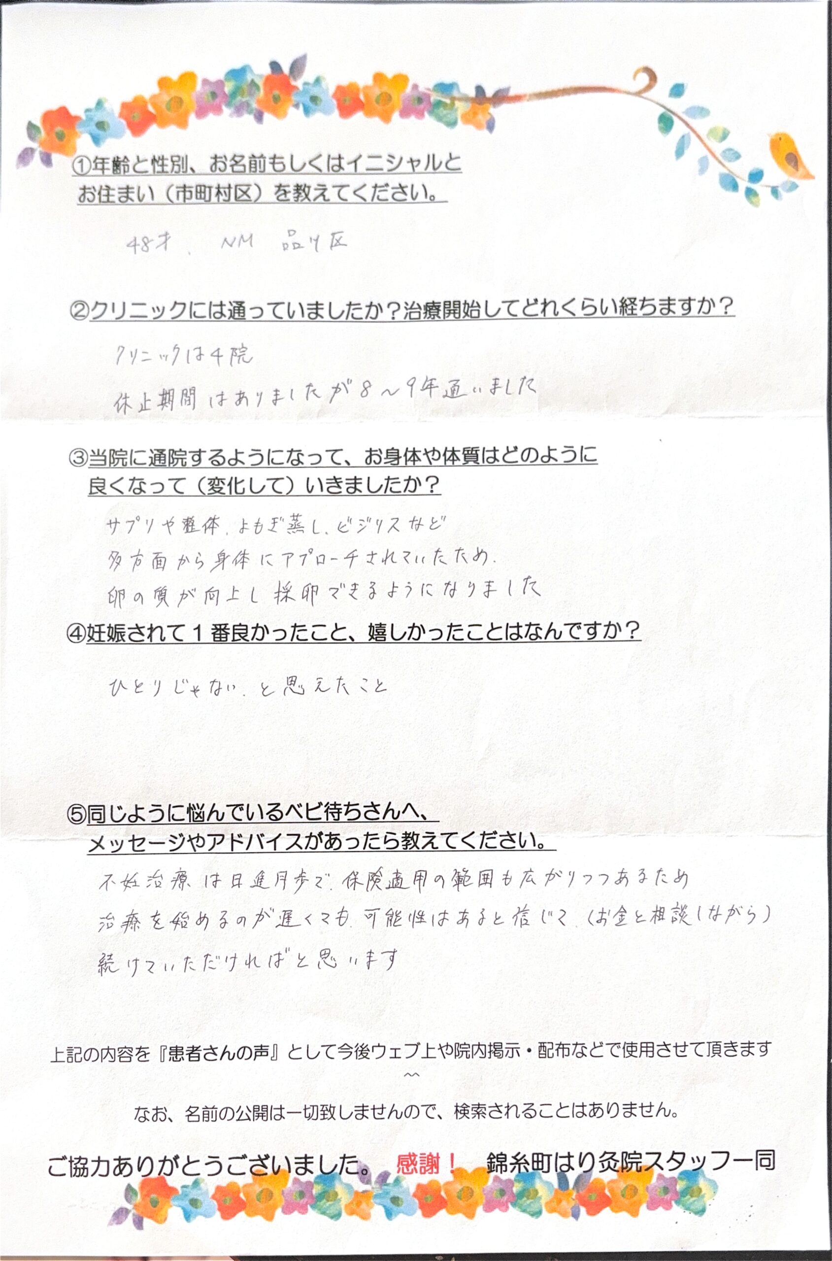 サプリや差体、よもぎ蒸し、ビジリスなど多方面から身体にアプローチされていたため、卵の質が向上し採卵できるようになりました。